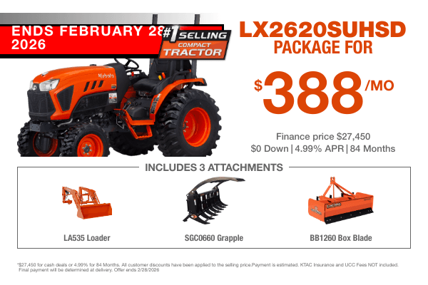 Burke Equipment Company has limited-time specials on a variety of in-stock tractor packages.