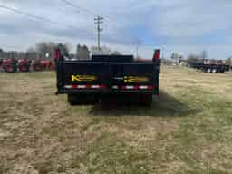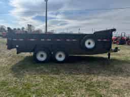 This trailer is great for the professional landscaper or roofer who wants a long lasting dump trailer with heavy duty quality features. The frame is 8″ channel with a 6″ channel tongue. The dump box is built with a tubing frame and channel cross-members, and has a one-piece 10 gauge floor. The combination barn doors and spreader tailgate allow you to open the doors wide to dump a load of trash or set the chains to spread gravel. The 6′ loading ramps slide in under the floor. The tailgate does NOT need to be removed to use the loading ramps. The front bulk-head and rear post assembly are raised to accept side boards. The 16000 GVWR Deluxe Dump Trailer has a powerful scissor lift operated by a self-contained hydraulic pump with a deep cycle battery and remote control. The running gear features 8,000 lb. 8 lug axles with 17.5 in. heavy duty load range H radial tires and heavy duty slipper spring suspension. Safety chains, full reflective tape, and a break-a-way switch meet all safety requirements. Trouble free lighting is assured with a U.S. made sealed modular wiring harness and lifetime LED lights on this Deluxe Heavy Duty Dump Trailer. A heavy duty tarp is included as standard.