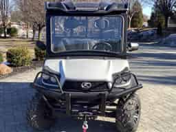 This Side Kick is loaded with factory installed options: XG Headrest, Axon 45-S Winch Kit, Premium Roof, Glass Windshield, LED Headlight Upgrade, 13.5″ LED Light Bar, Premium Side Mirror w/ Dual Axis Breakaway, and Electric Over-Hydraulic Bed Lift. RTVXG850 come equiped with 54 Hp Kubota Gas Engine w/ high speed up to 40 mph. Front & Rear Independent Suspension. Front & Rear Disc Brakes. Call for more details.