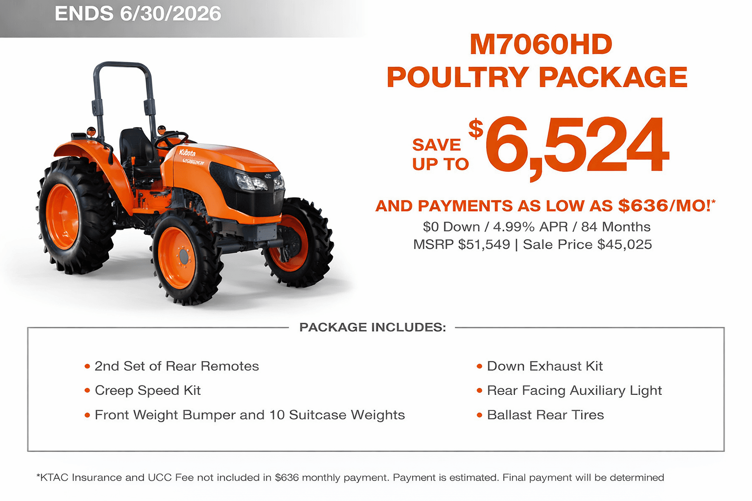 Kubota M7060HD Tractor Poultry Package